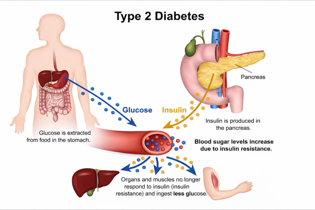 Unlike Type 1, Type 2 develops gradually and is strongly linked to lifestyle. With the right changes, many patients can manage it very effectively and sometimes even achieve remission.